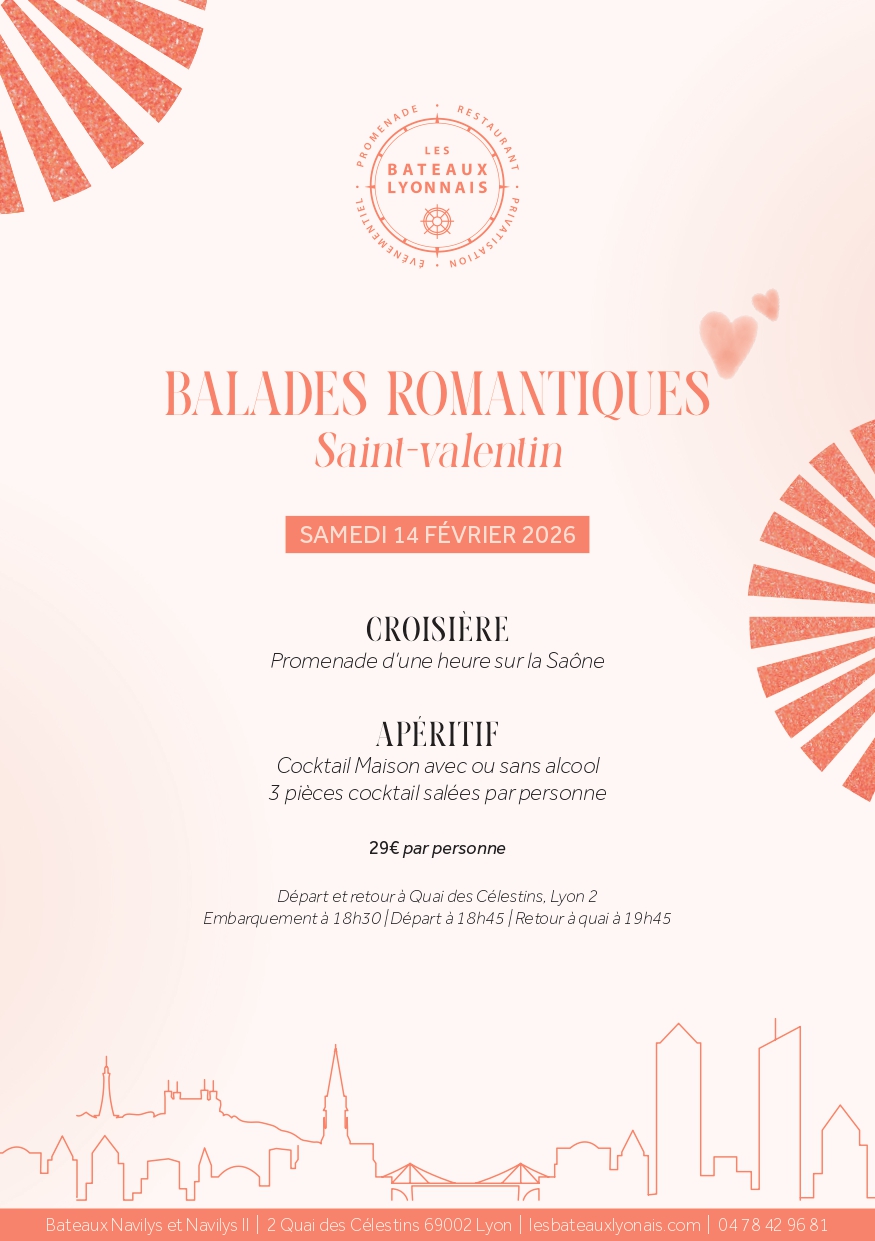 Embarquez pour une balade romantique sur la Saône à bord des bateaux Navilys et Navilys II, l'élégance et la romance se mêlent pour créer une expérience inoubliable.
